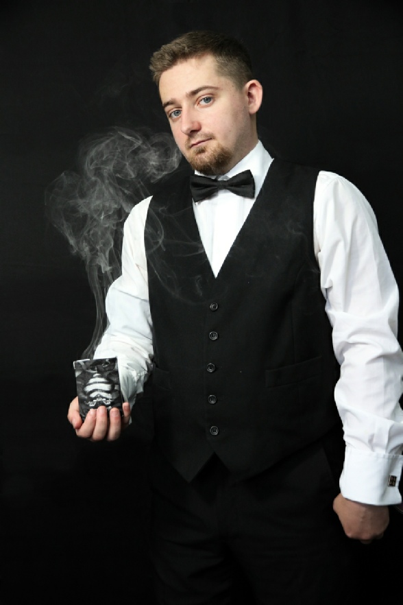 A frequenter of steampunk and burlesque festivals (such as BressSteam and Kentwell Hall’s Scaresville), his talents extend beyond magic to circus skills and martial arts- namely Aikido and Ninjjitsu. He is equally accustomed to large crowds and close up spectators, and has taken part in various charitable events in addition to his professional work.